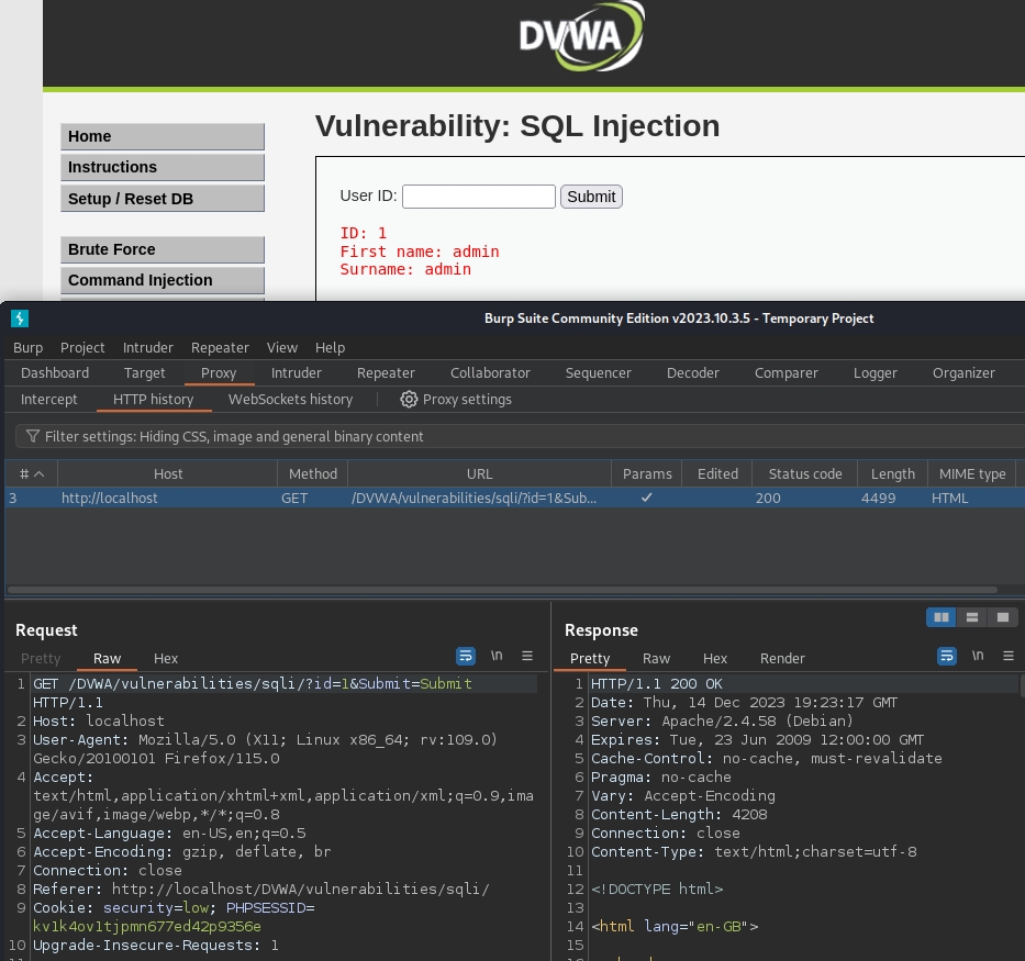 In this case payload is always the same of low level, but we need to add it into second page, infact we've two request (GET and POST)