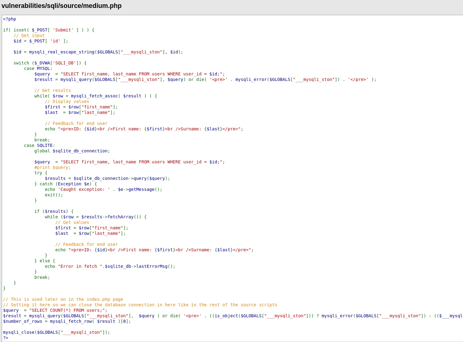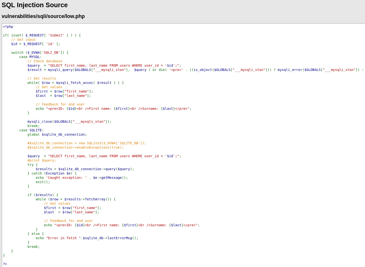 SELECT first_name, last_name FROM users WHERE user_id = '1' OR 1=1 -- ';