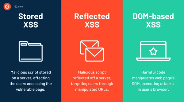 XSS vulnerabilities and attacks are commonly categorized into two main types: stored/persistent and reflected.