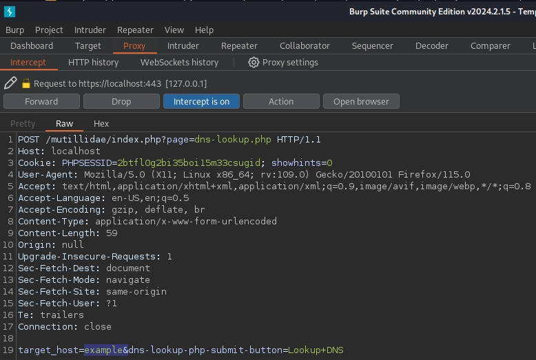 xsser --url "https://localhost/mutillidae/index.php?page=dns-lookup.php" -p "target_host=XSS&dns-lookup-php-submit-button=Lookup+DNS"