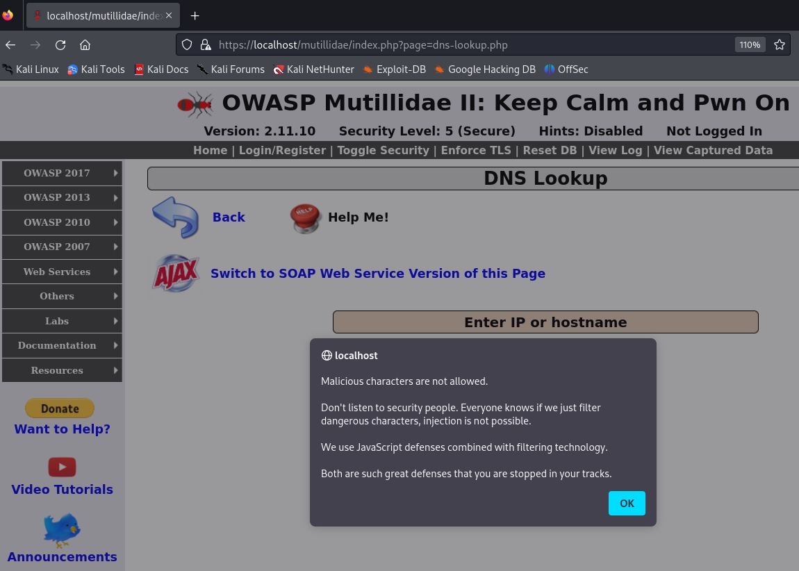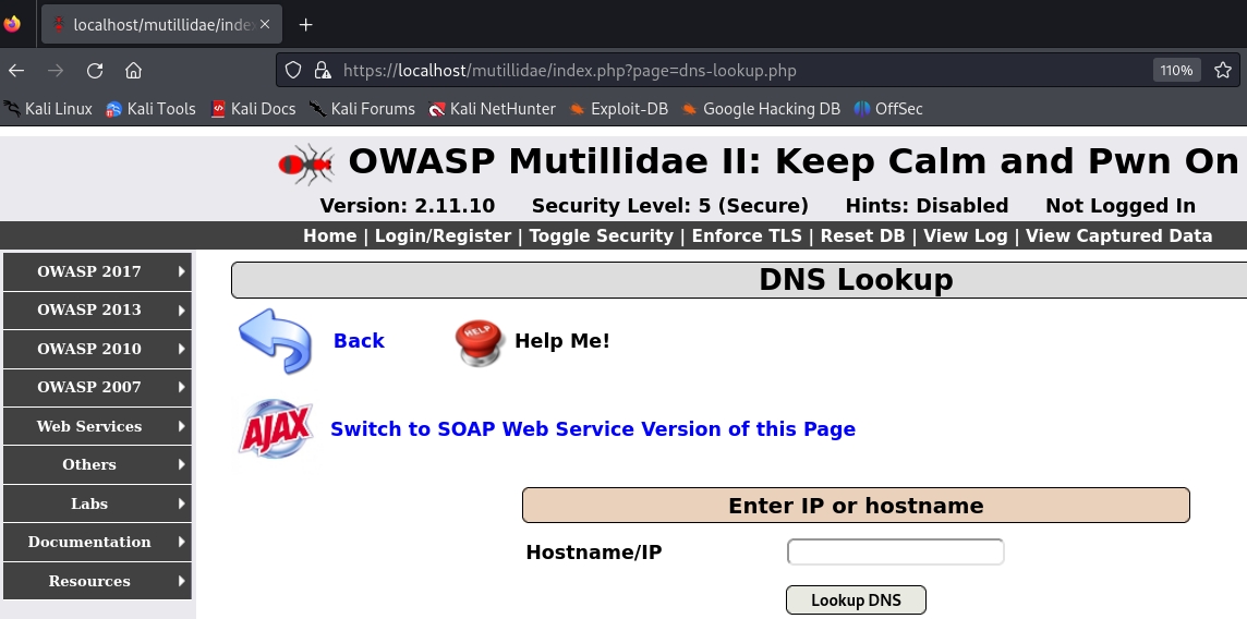 XSS Reflected - DNS Lookup -> https://localhost/mutillidae/index.php?page=dns-lookup.php