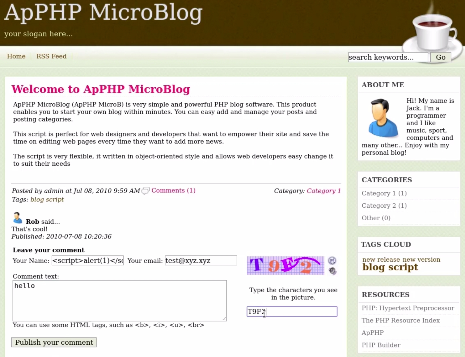 Assuming the application doesn't perform any other processing of the data, an attacker can submit a malicious comment like this: