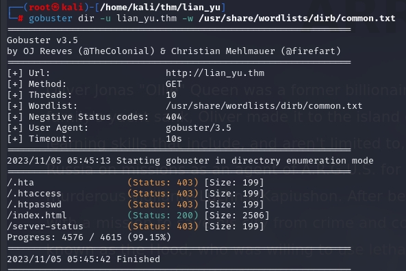 gobuster dir -u lian_yu.thm -w /usr/share/wordlists/dirbuster/directory-list-2.3-medium.txt