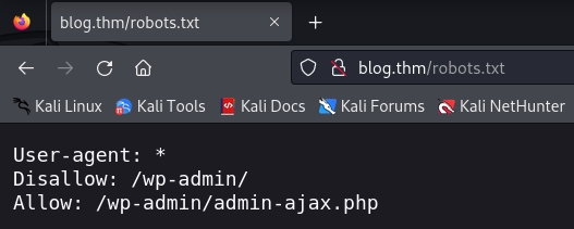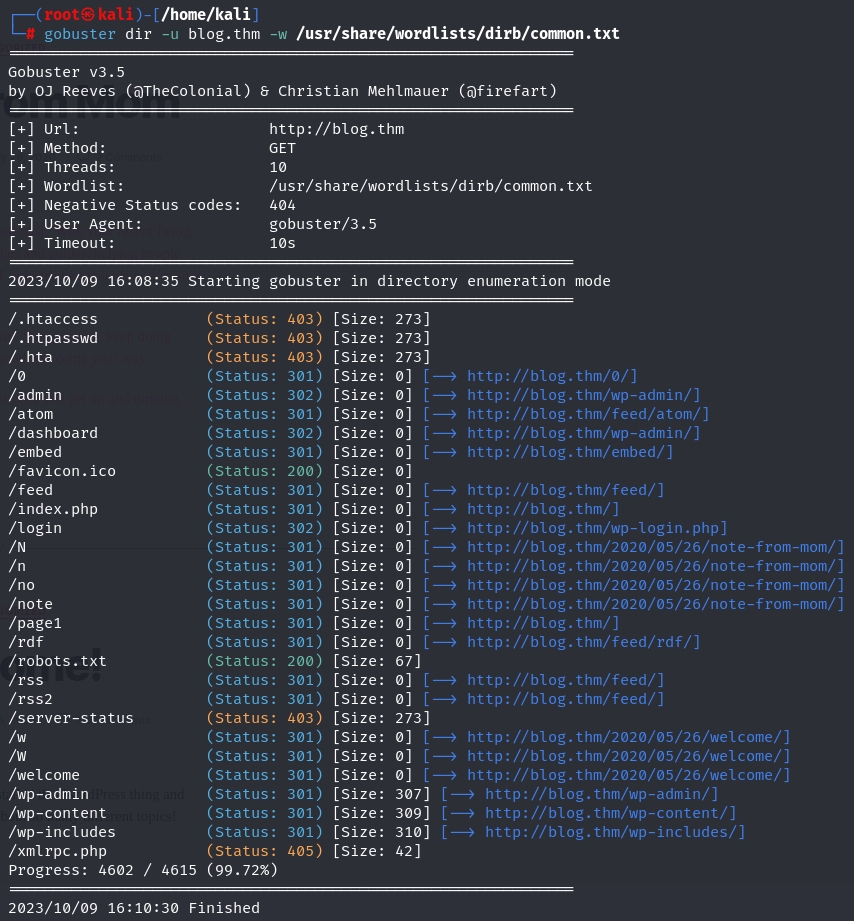 gobuster dir -u blog.thm -w /usr/share/wordlists/dirb/common.txt