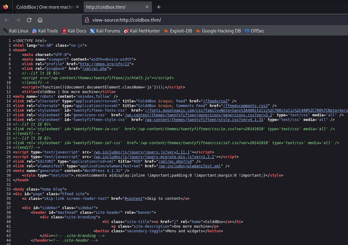we can see that's a wordpress web site, then we can try to see page source for checking information disclosure.