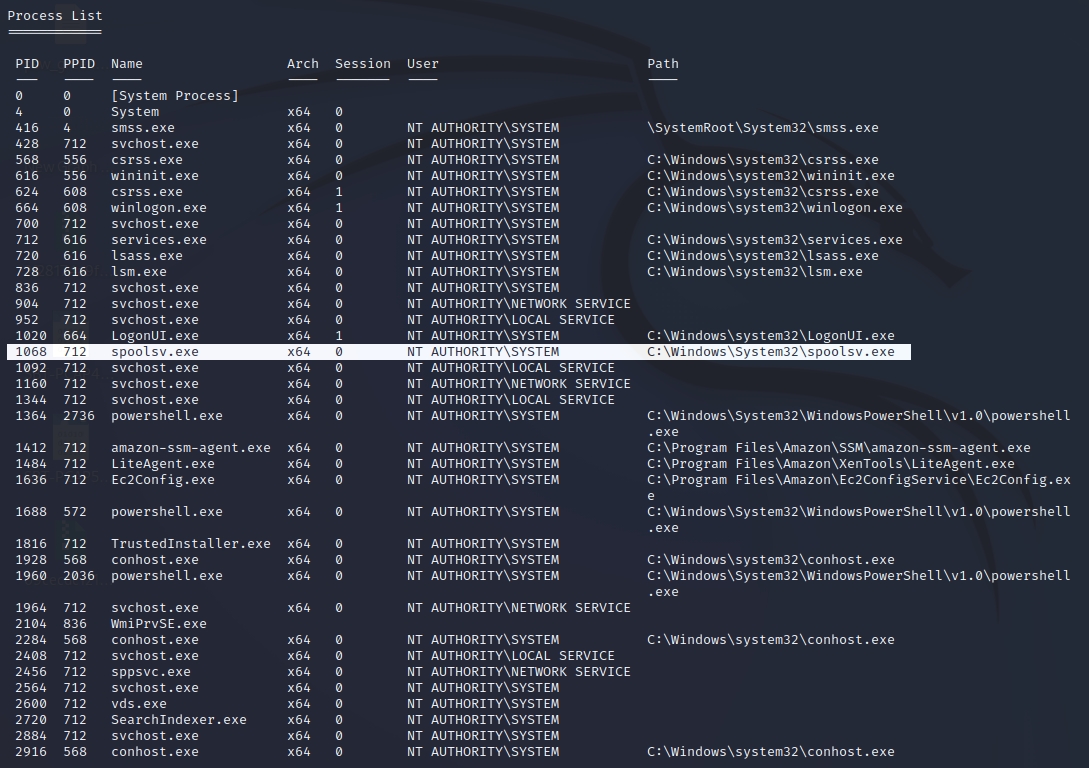 meterpreter > ps