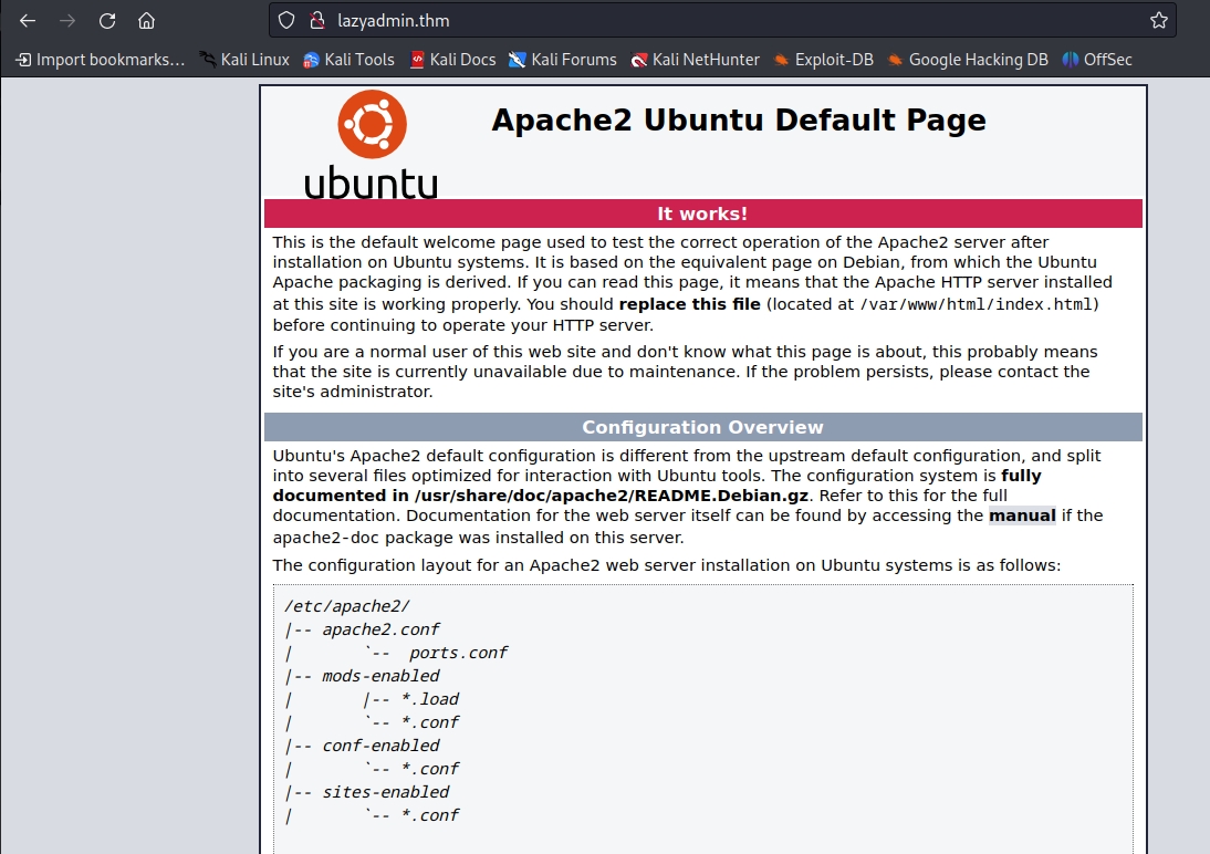 echo "10.10.129.248 lazyadmin.thm" >> /etc/hosts