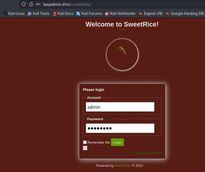 We try default user and password but it doesn't work, then, we see that website uses SweetRice how CMS. We can use searchsploit to find and eventually exploit: