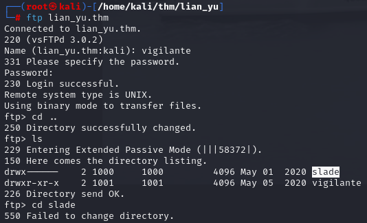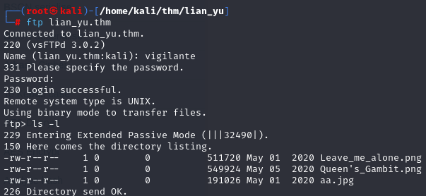 Remember that we've a potential username: 'vigilante', then we try to login with ftp: