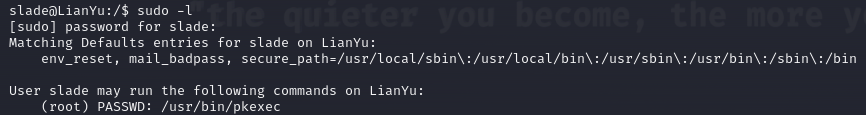 We can do sudo -l command to discover user's permissions.