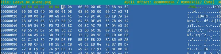 The 'Leave_me_alone.png' image is corrupt, seeing header we see that's not '.png':
