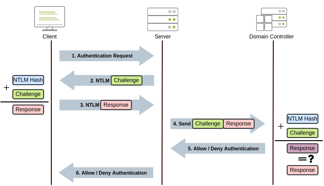 The server forwards the challenge and the response to the Domain Controller for verification.