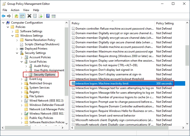 We will set the inactivity limit to 5 minutes so that computers get locked automatically if any user leaves their session open. After closing the GPO editor, we will link the GPO to the root domain by dragging the GPO to it:
