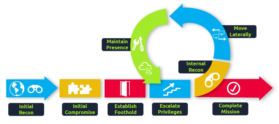 While many cyber kill chains reference lateral movement as an additional step on a linear process, it is actually part of a cycle. During this cycle, we use any available credentials to perform lateral movement, giving us access to new machines where we elevate privileges and extract credentials if possible. With the newfound credentials, the cycle starts again.
