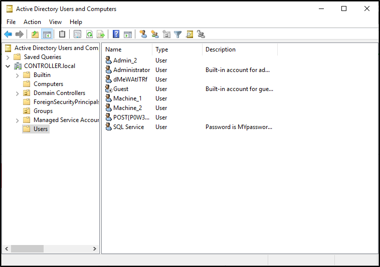 Some sys admins dont realize that you as an attacker can see the descriptions of user accounts so they may set the service accounts passwords inside of the description look into the description and find what the SQL Service password is.