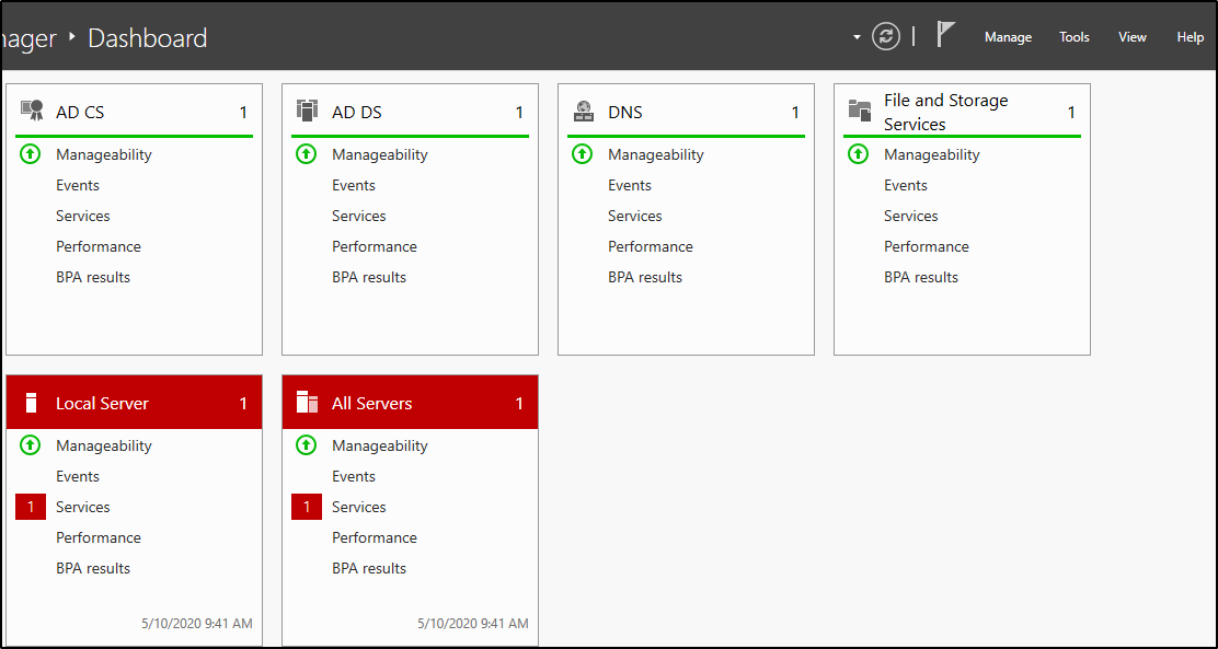 Dont worry about the AD CS, AD DS, DNS, or File and Storage Services these are setup for exploitation of the active directory and dont have much use for post-exploitation